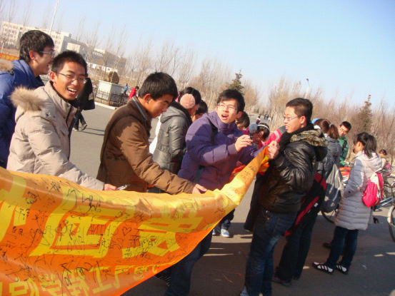 为纪念“一二•九”爱国运动七十六周年,进一步促进青年老员工铭记历史、勿忘国耻,激发莘莘学子的爱国热情,明确自己肩负的社会责任与历史使命,suncitygroup太阳成集团团委、员工会于2011年12月9日中午在中心校区举办了纪念“一二•九”运动主题签名活动。